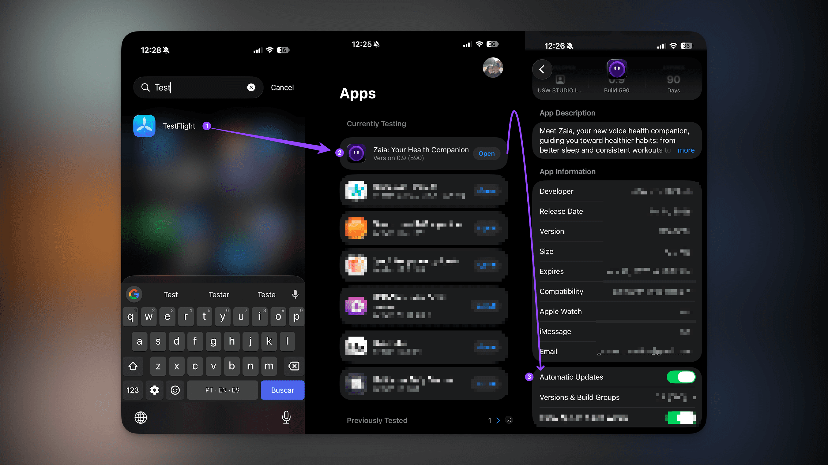 Important: In the TestFlight app, make sure Automatic Updates are enabled. Since this is a beta version, it’s critical to keep your Zaia app up to date to ensure the best possible experience.